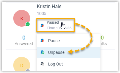 As a queue manager, you can change an agent's status remotely. This topic describes how to log an agent in to a queue, log an agent out of a queue, pause agents' service, and unpause agents' service.