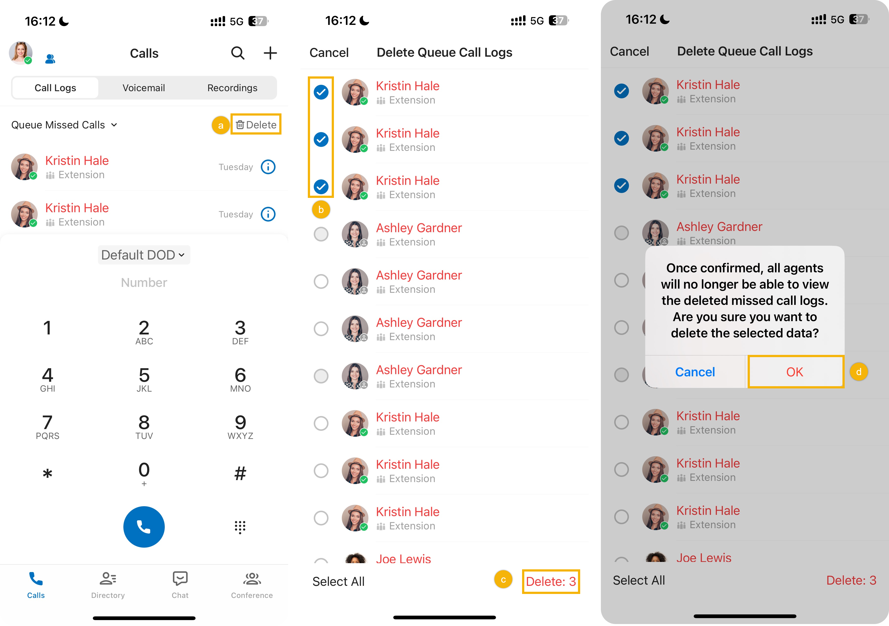 Operation Instruction Delete missed queue call logs You can delete missed queue call logs as follows: - To delete a single call log, swipe left on the desired call log, then tap Delete.