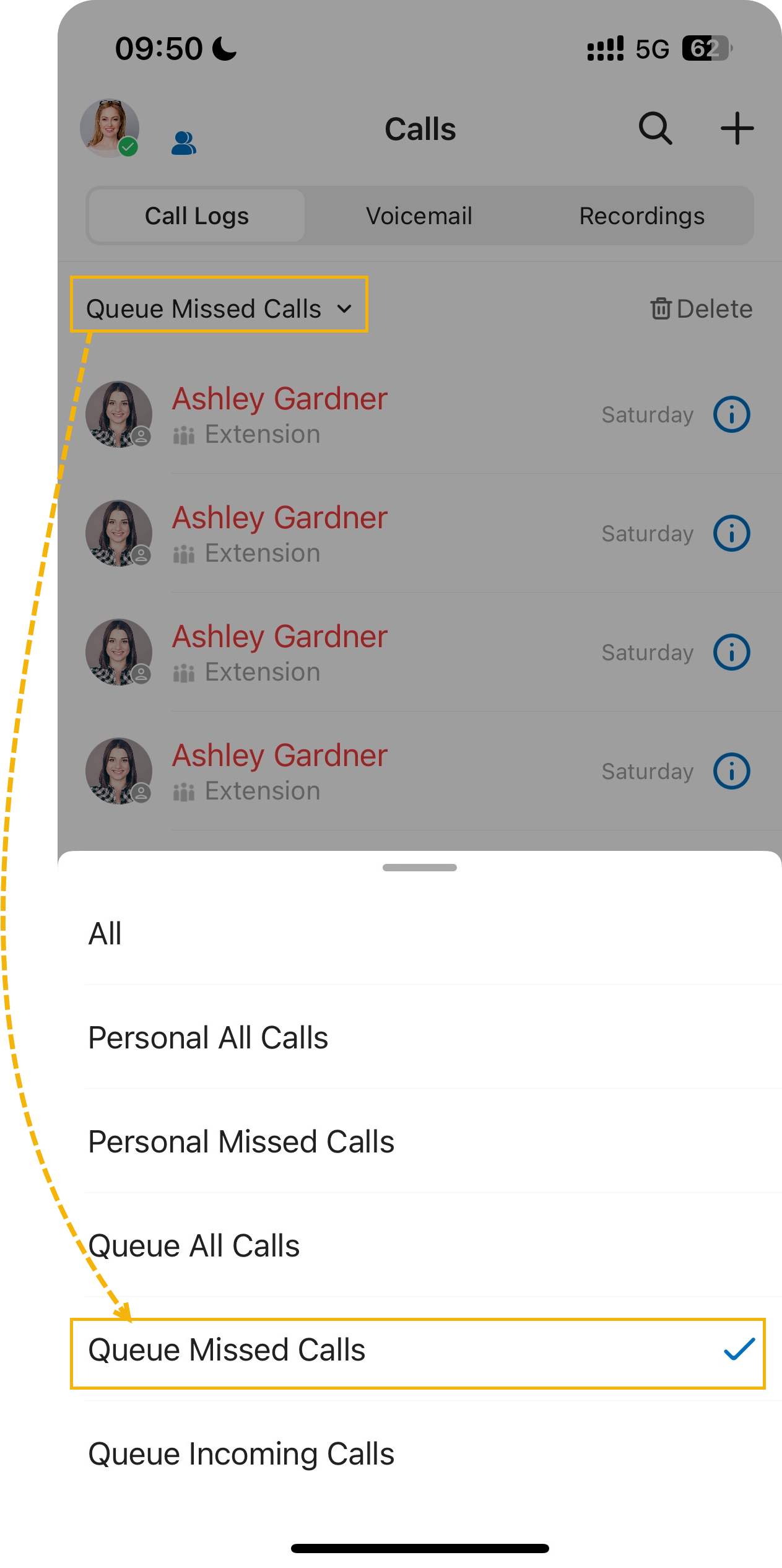 Manage missed queue call logs on Cloud Voice App Mobile Client