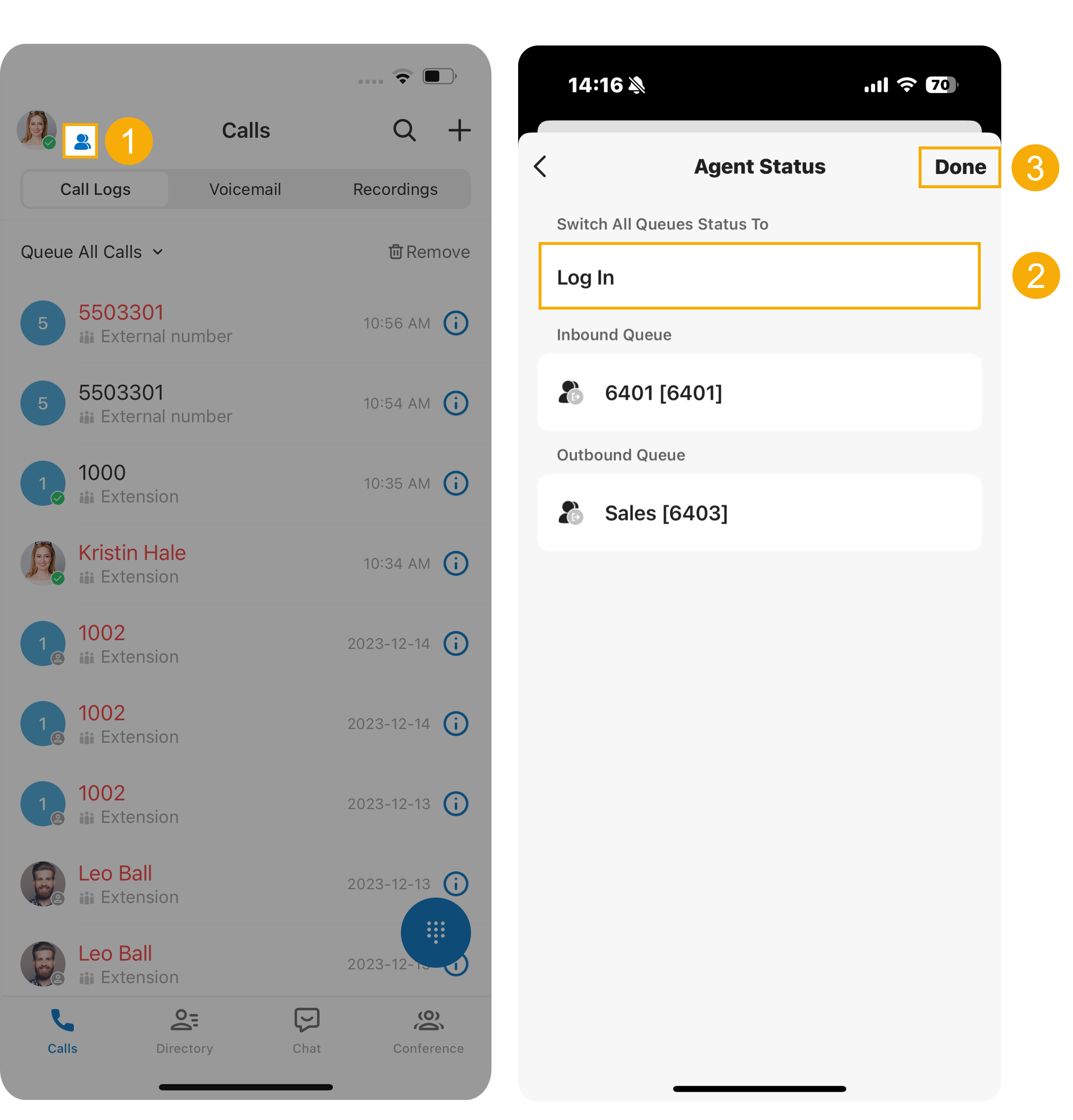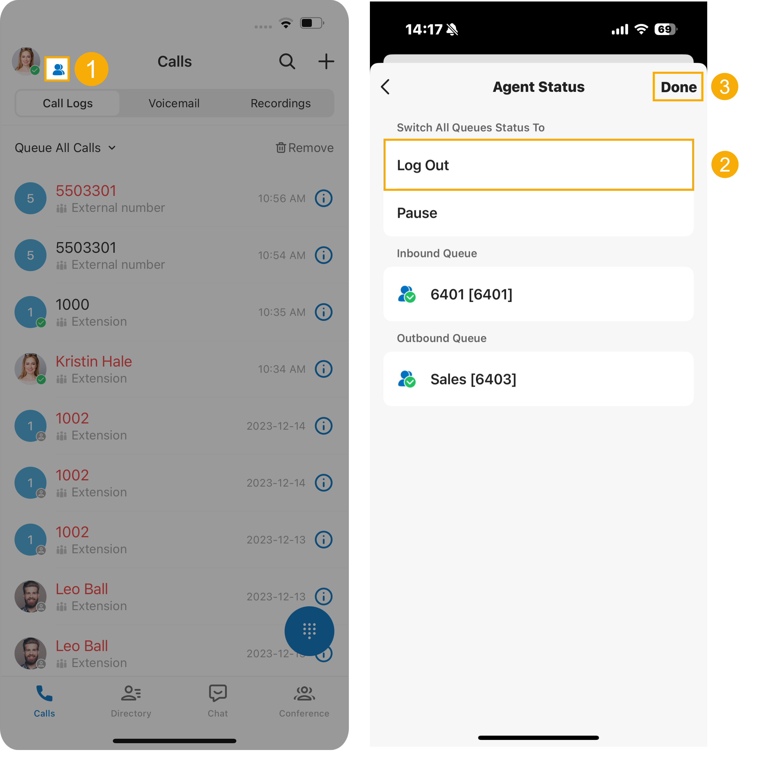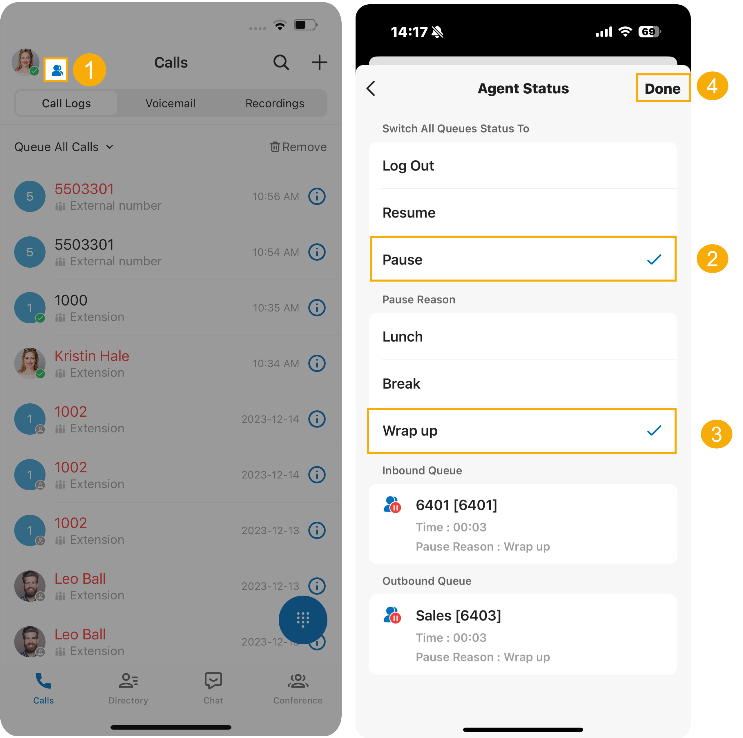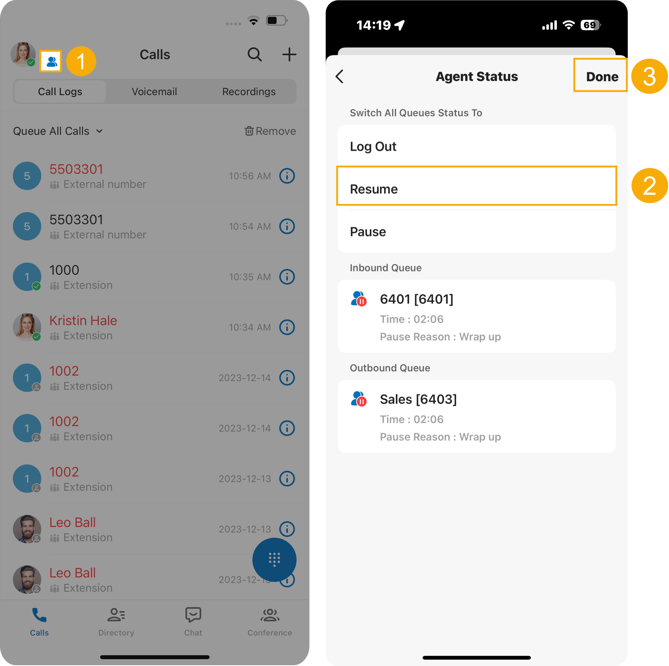 As an agent of a queue or multiple queues, you can change your own status in a specific queue or in all queues on Cloud Voice App Mobile Client. This topic describes how to log in to and out of queues, pause and unpause queue calls.
