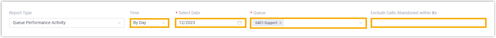 - Filter data by system time, queue(s), or call abandonment time.Note: To filter out abandoned short calls, specify the ring duration in the Exclude Calls Abandoned within Xs field. Calls abandoned within this time frame will NOT be included in the report.