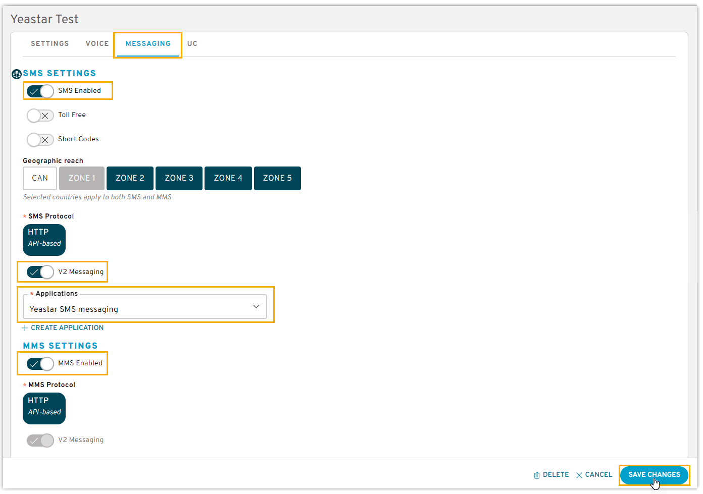- Enable HTTP SMS and MMS messaging for your