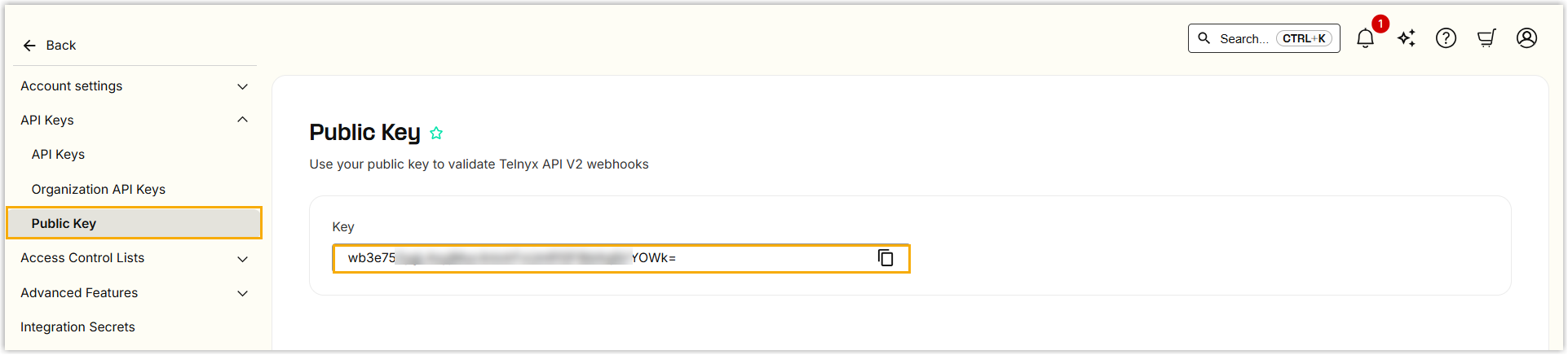 - Public Key: Paste the Public Key obtained from Telnyx.