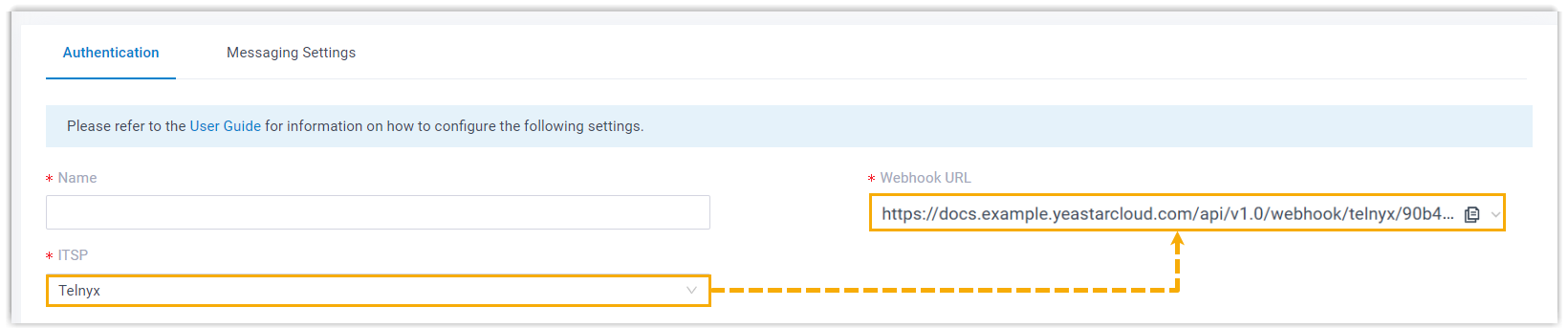 Webhook URL.Important: The URL will change once you leave the current page, please make sure you use the latest Webhook URL for the configuration on the service provider's customer portal.