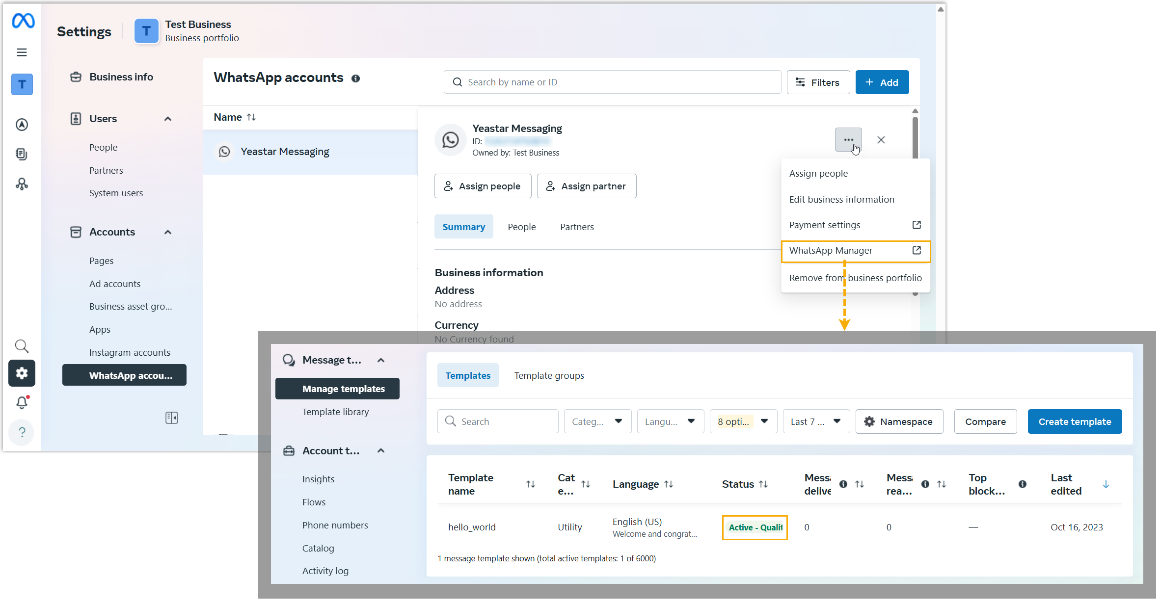 - A WhatsApp channel has been set up with your WhatsApp Business Account.