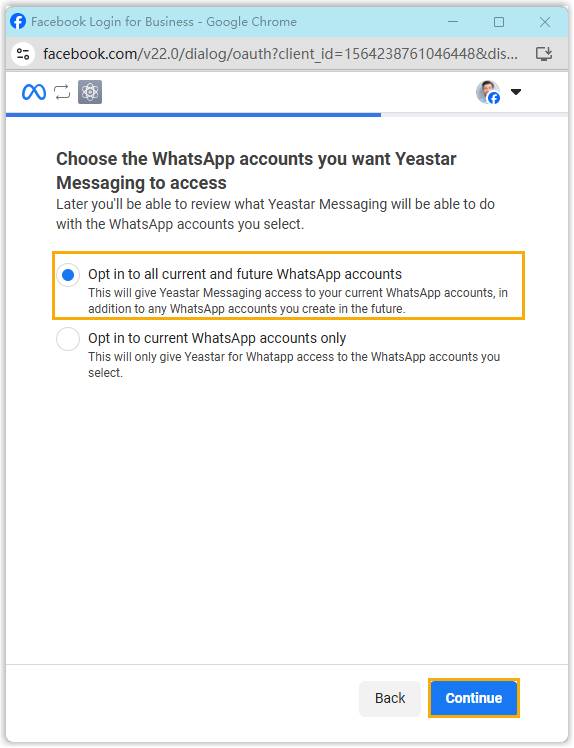 - Click Continue to continue with