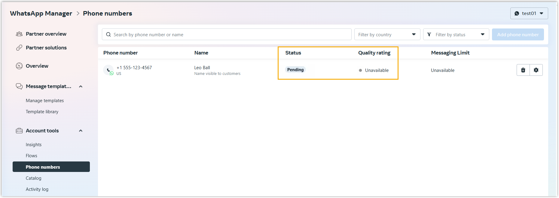 - Go to , select the pending phone number in the