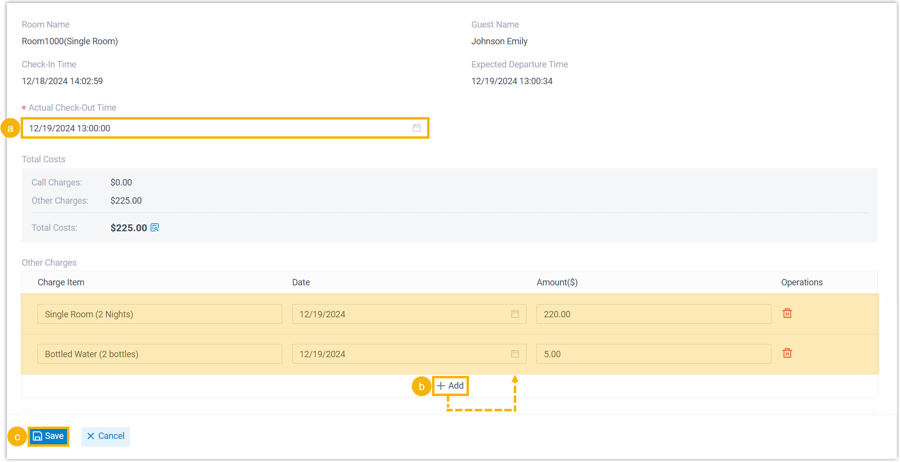 the room.Note: A maximum of 10 charge items can be added.