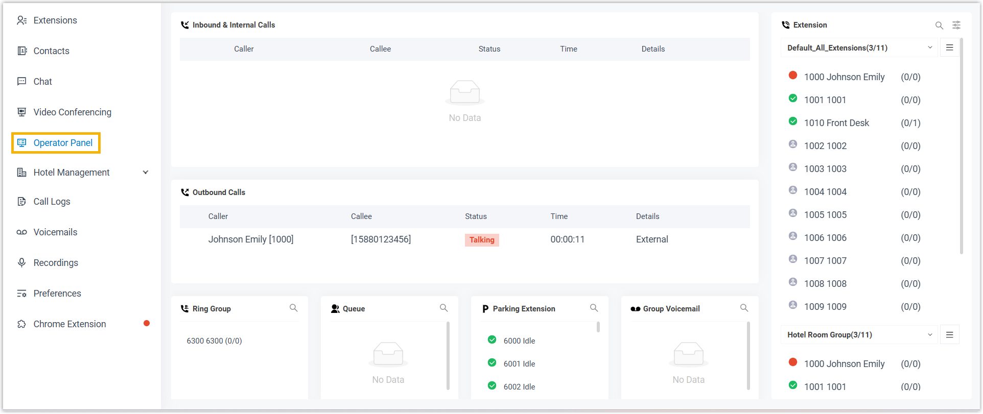 Call Service The authorized staff member can manage guest calls from Operator Panel on Cloud Voice App Desktop/Web Client.Tip: Refer to Call Management Permission to learn more.