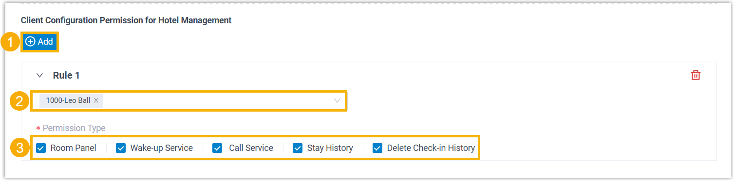 - Client Configuration Permission for Hotel Management enables you to grant specific room operation privileges to staff members (e.g. front desk). The authorized staff member(s) will be able to perform these operations on their Cloud Voice App Desktop/Web Client.