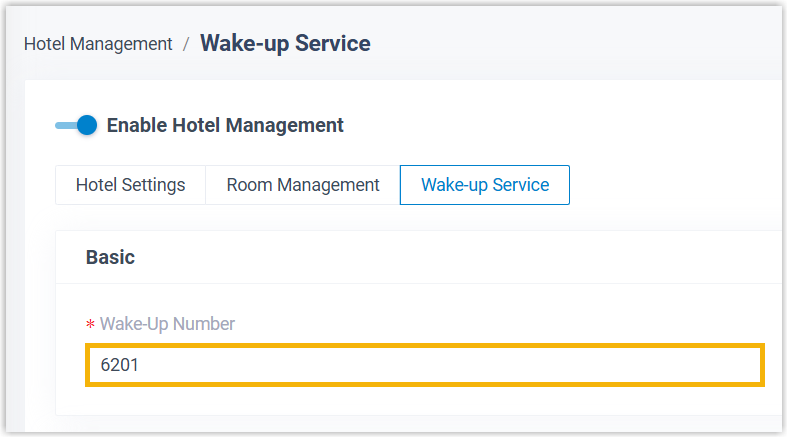 - Wake-up Number is an internal number that guests can call to set wake-up calls.