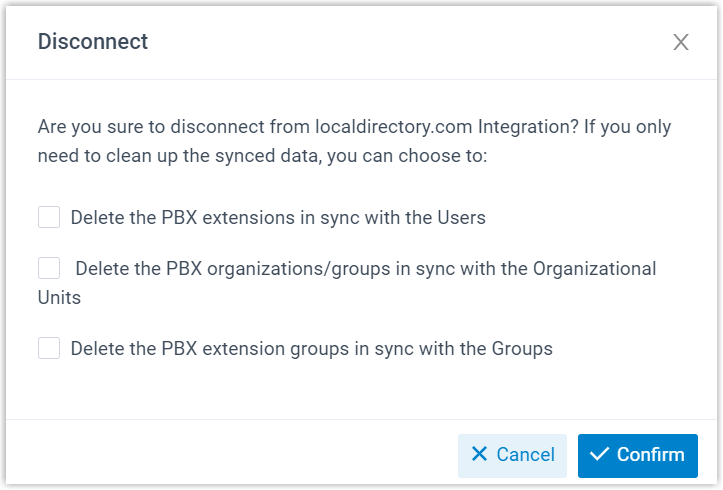 If you want to integrate with another directory, you need to remove the current integration first. This topic describes how to disconnect the integration between Cloud Voice and Active Directory.