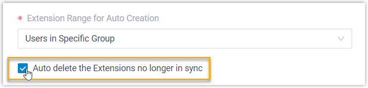 Note: In future use, if you change the range of the AD users to be synced, you can decide how to deal with the extensions that are no longer synced from the AD users via the Auto delete the Extensions no longer in sync option.