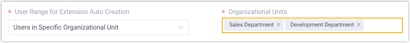 - Specify the range of AD users to be synchronized and set up extension auto assignment rule accordingly. In this way, the AD users and PBX extensions can be associated automatically after a data synchronization.
