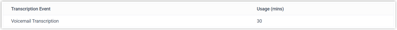 Metric Description Transcription Event The type of transcription performed. - Voicemail Transcription