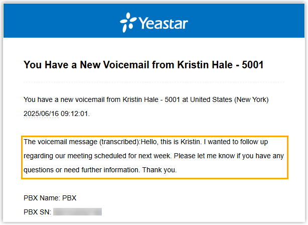 Note: Extension users can also customize the AI voicemail transcription settings directly on their Cloud Voice App clients, and the changes will be automatically synchronized to the corresponding extension settings on the PBX.