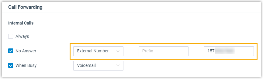- In the drop-down list beside When Busy, select External Number as the forwarding destination.