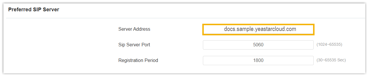 - Scroll down to the Preferred SIP Server section, in the Server