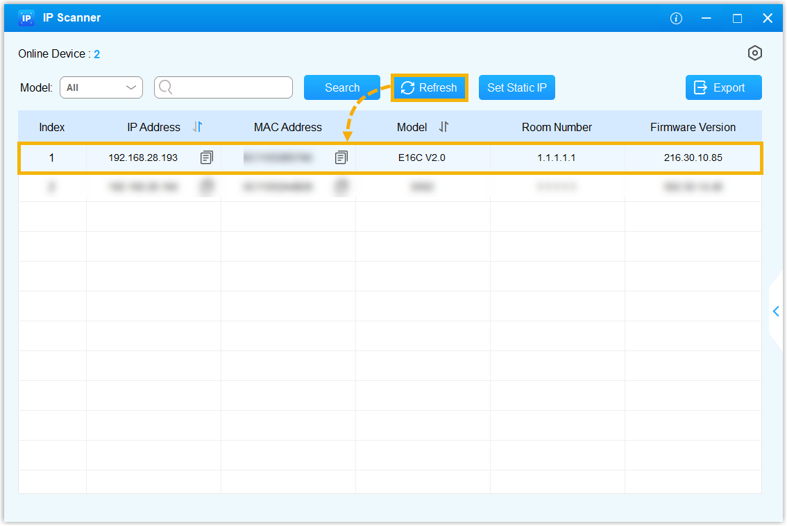 - Download and install the Akuvox IP scanner on your computer that is on the same subnet as the intercom device.