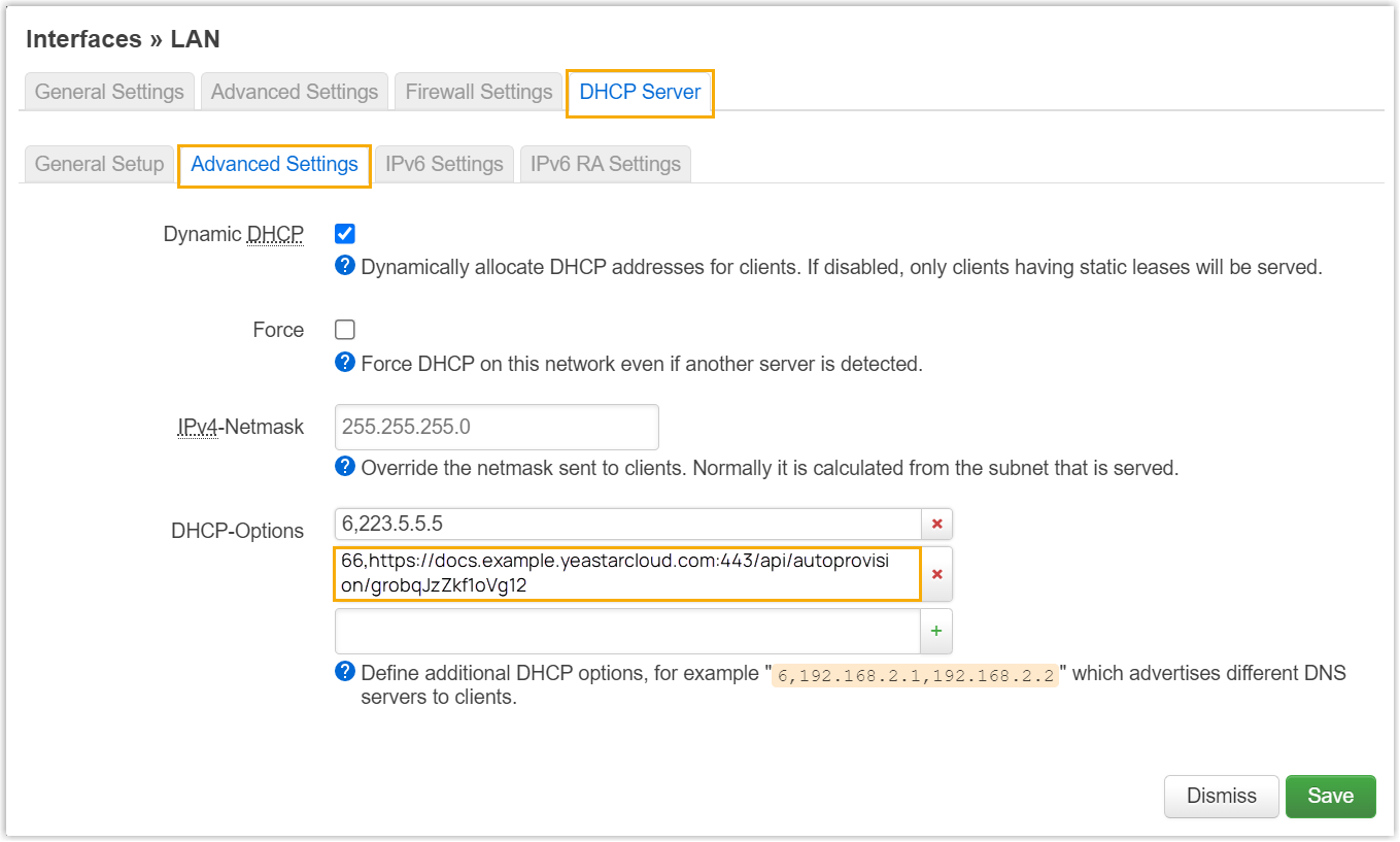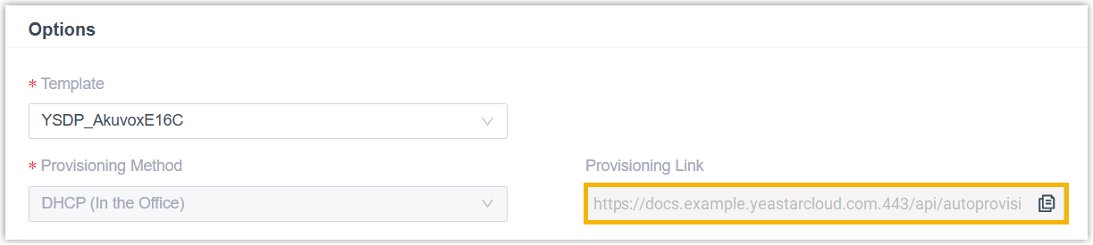 A provisioning link is automatically generated in the Provisioning Link filed, which points to the location where the device's configuration file is stored.