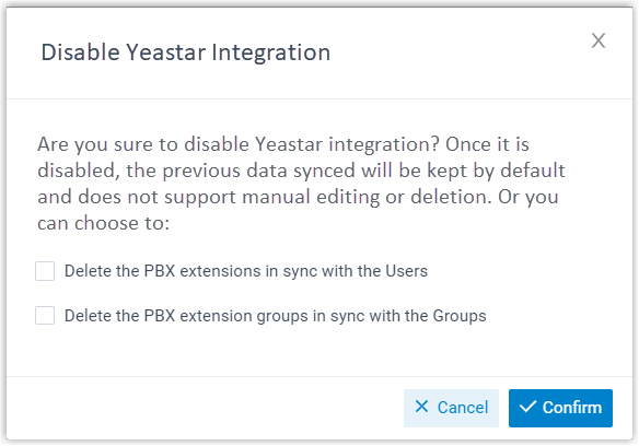 Delete the PBX extension groups in sync with the Groups - If selected, the extension groups will be deleted.