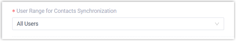 Users in Specific Group Synchronize personal contacts of users within the specified group(s) to their Cloud Voice App Contacts directory. You need to select the desired groups in the Group drop-down list.