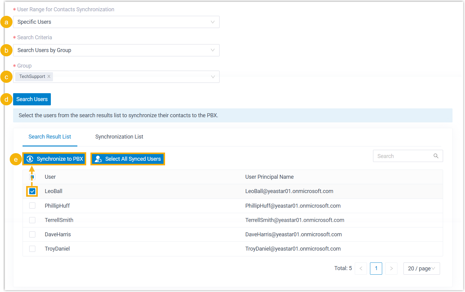 Note: Click Select All Synced Users to quickly select all Microsoft Entra ID users that have already been synced to the PBX.