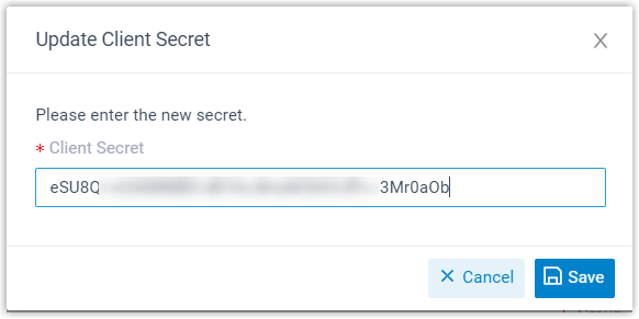 - In the Client Secret field, paste the new client secret.