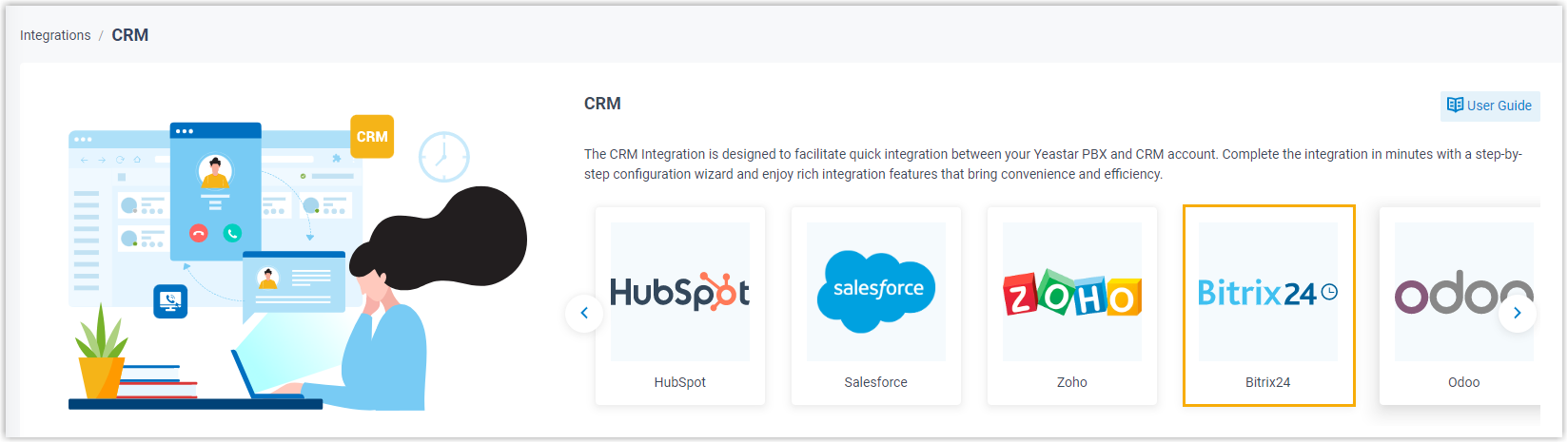 - On the CRM integration page of PBX, click