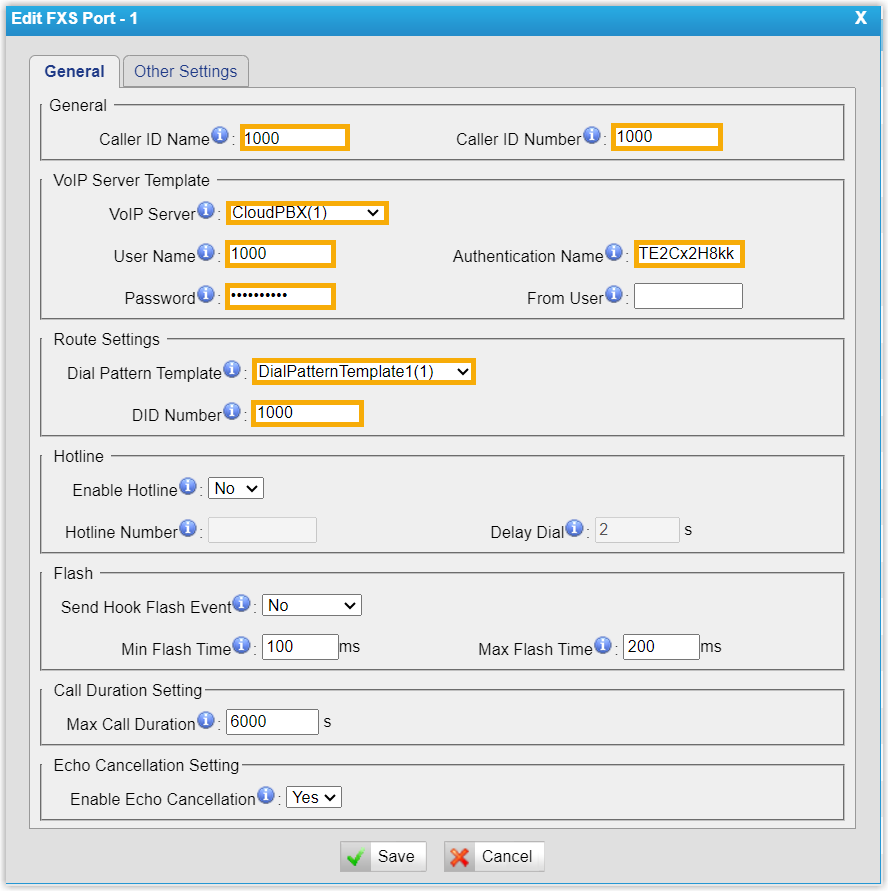 - Caller ID Name: Enter a name to help you identify the FXS port.