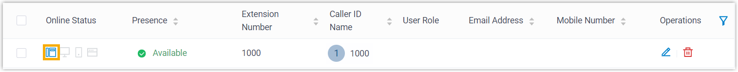 - On PBX web portal, go to to check the extension status. If the registration is