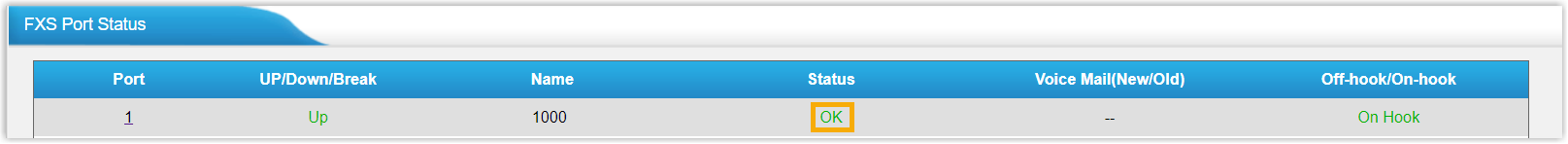 - On gateway web interface, go to to check the FXS port status. If the registration is