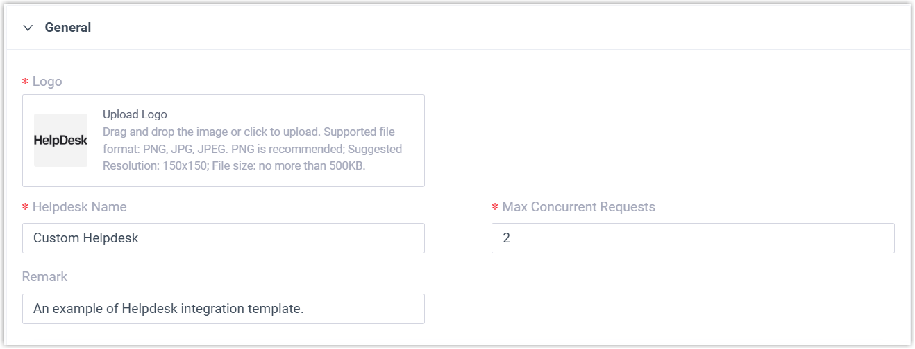 displayed in the Helpdesk list on the Integration page.Note: The logo file should meet the following requirements: