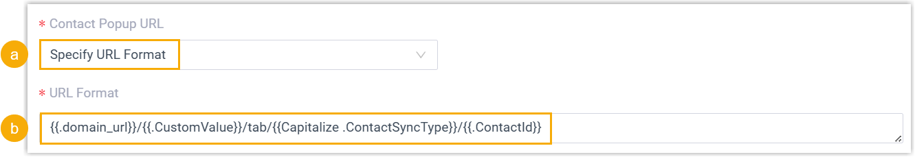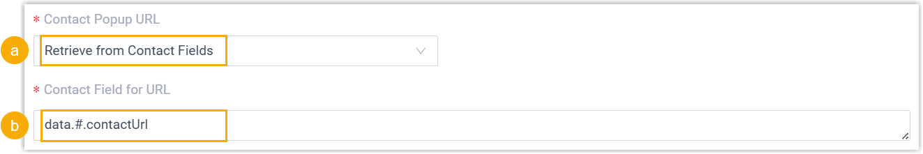 - In the Contact Popup URL drop-down list, select Retrieve from Contact Fields.