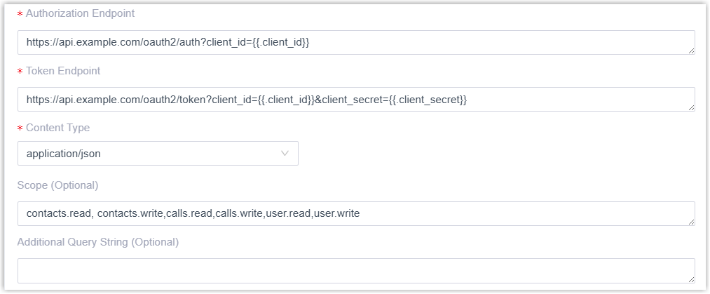- The values input by users during the integration authentication process can be used as variable values in the template.