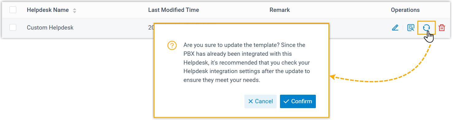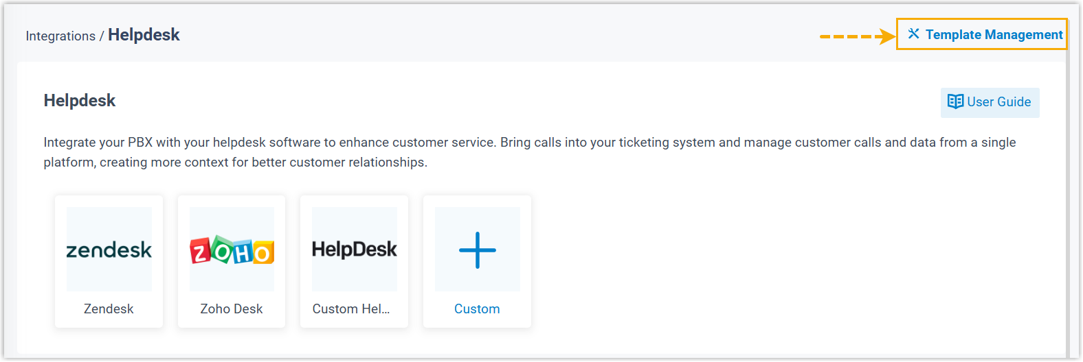 - If you have integrated the custom Helpdesk with PBX, do as follows to