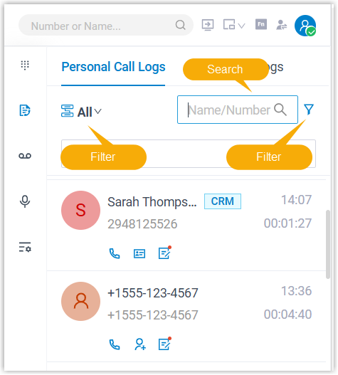 - On the plugin, go to Call Logs, then go to the Personal Call Logs / Queue Call Logs as needed.
