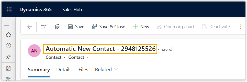 Note: The name of the newly created contact has a prefix of