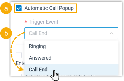 - Select the checkbox of Automatic Call Popup.