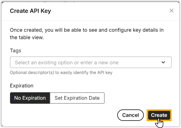 - Create an API key.