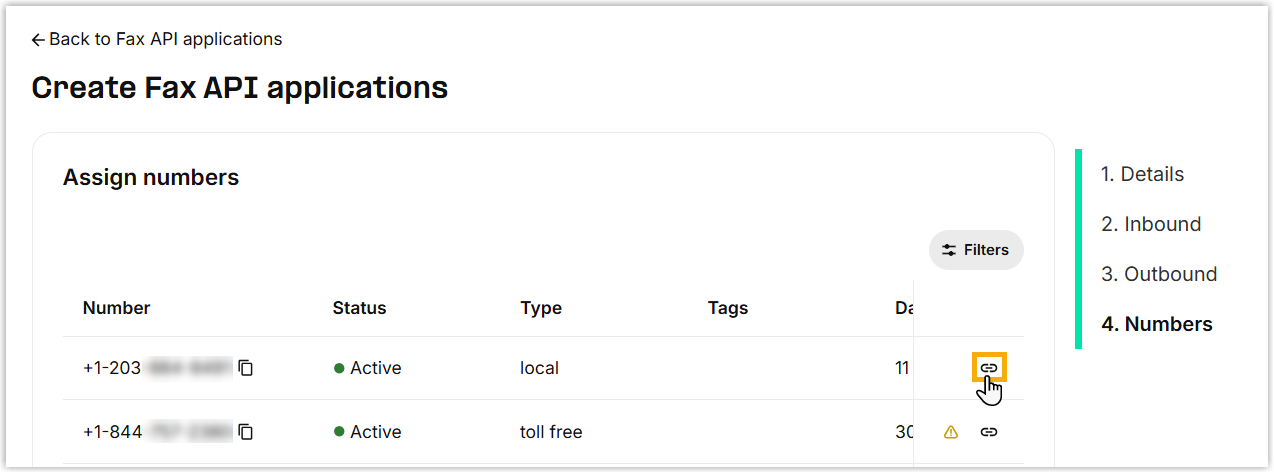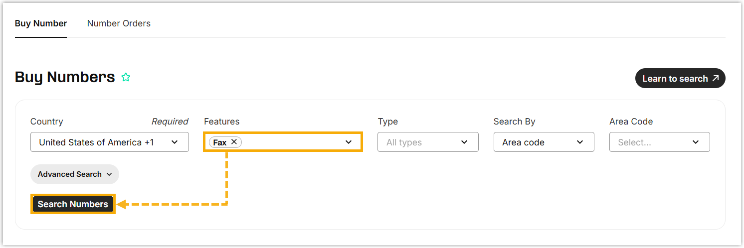 - Search and buy a number with fax capability.