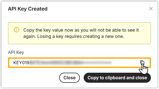 the API key and save it for later use, then close the