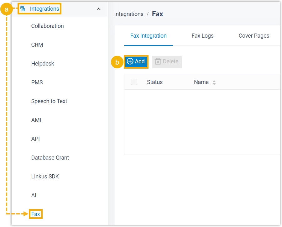- Under Fax Integration tab, click Add.