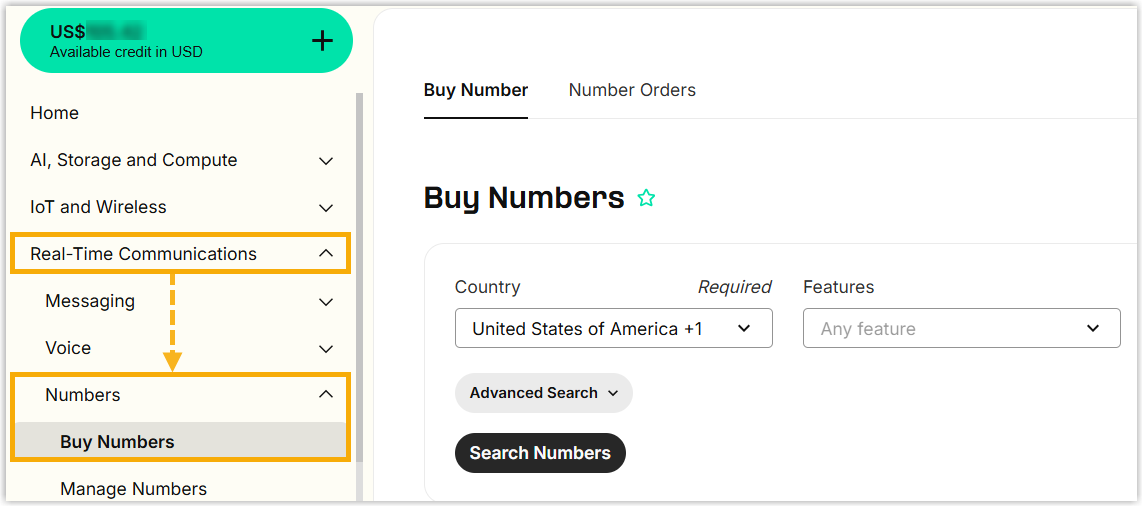 - Under the Buy Number tab, set