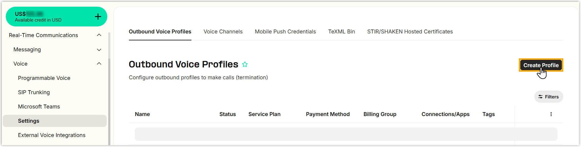 - 2. Create outbound voice profile