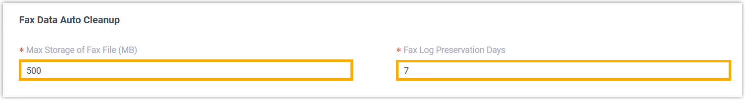 Cloud Voice logs all inbound and outbound fax activities and stores the associated fax files. By default, the system automatically deletes fax data when either of the following thresholds is reached: