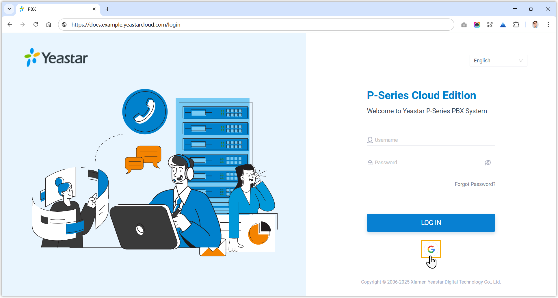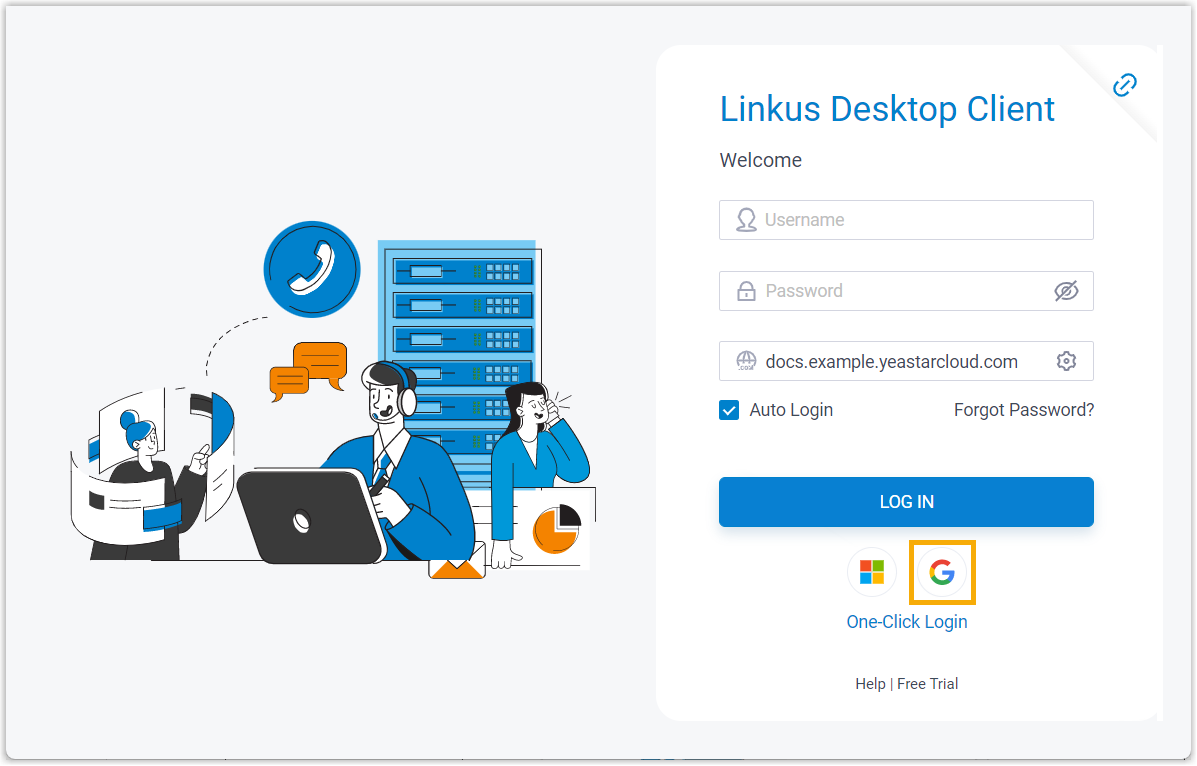 - Allow users to log in via SSO or using the PBX credential: Google users can log in to Cloud Voice App UC Clients via SSO or using the associated extension's account credentials.