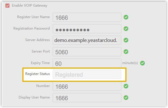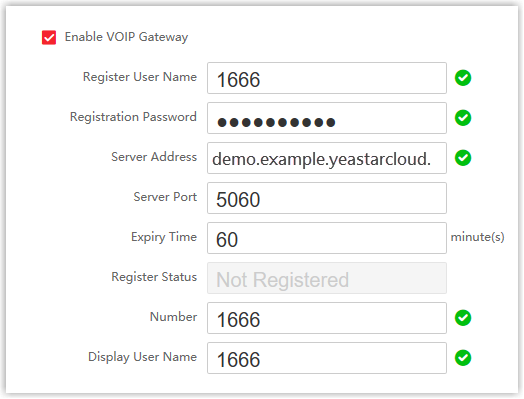 - Server Port: Enter the SIP registration port of Cloud Voice. In this example, enter 5060.