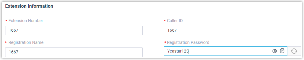 - Password: Enter the registration password of the extension. In this example, enter Cloud Voice123.