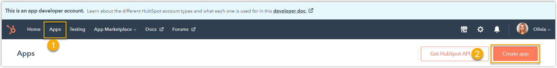 - Log in to your HubSpot developer account.